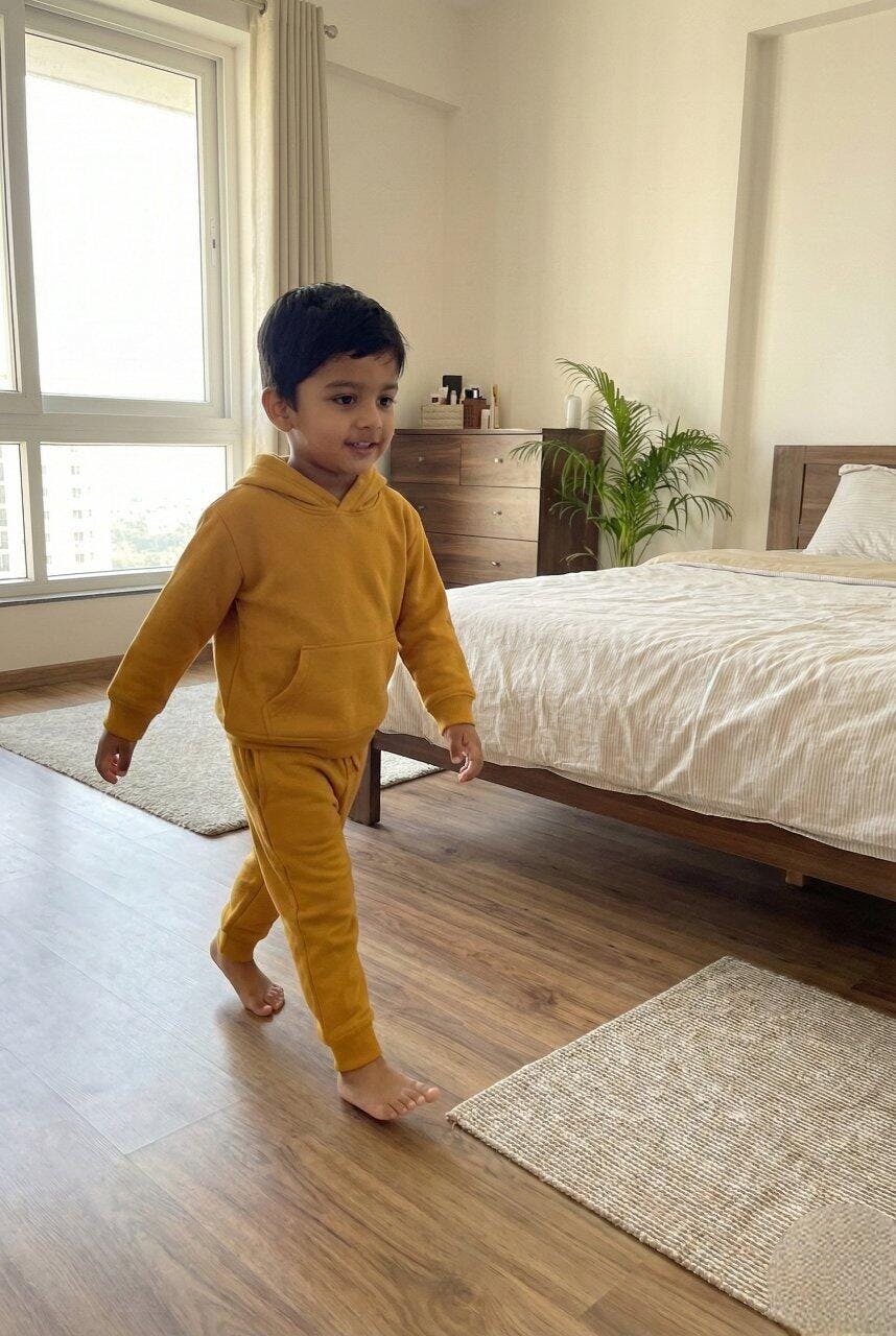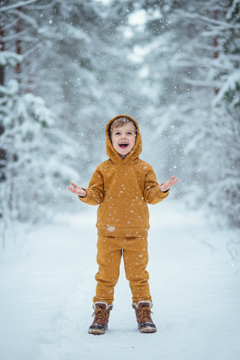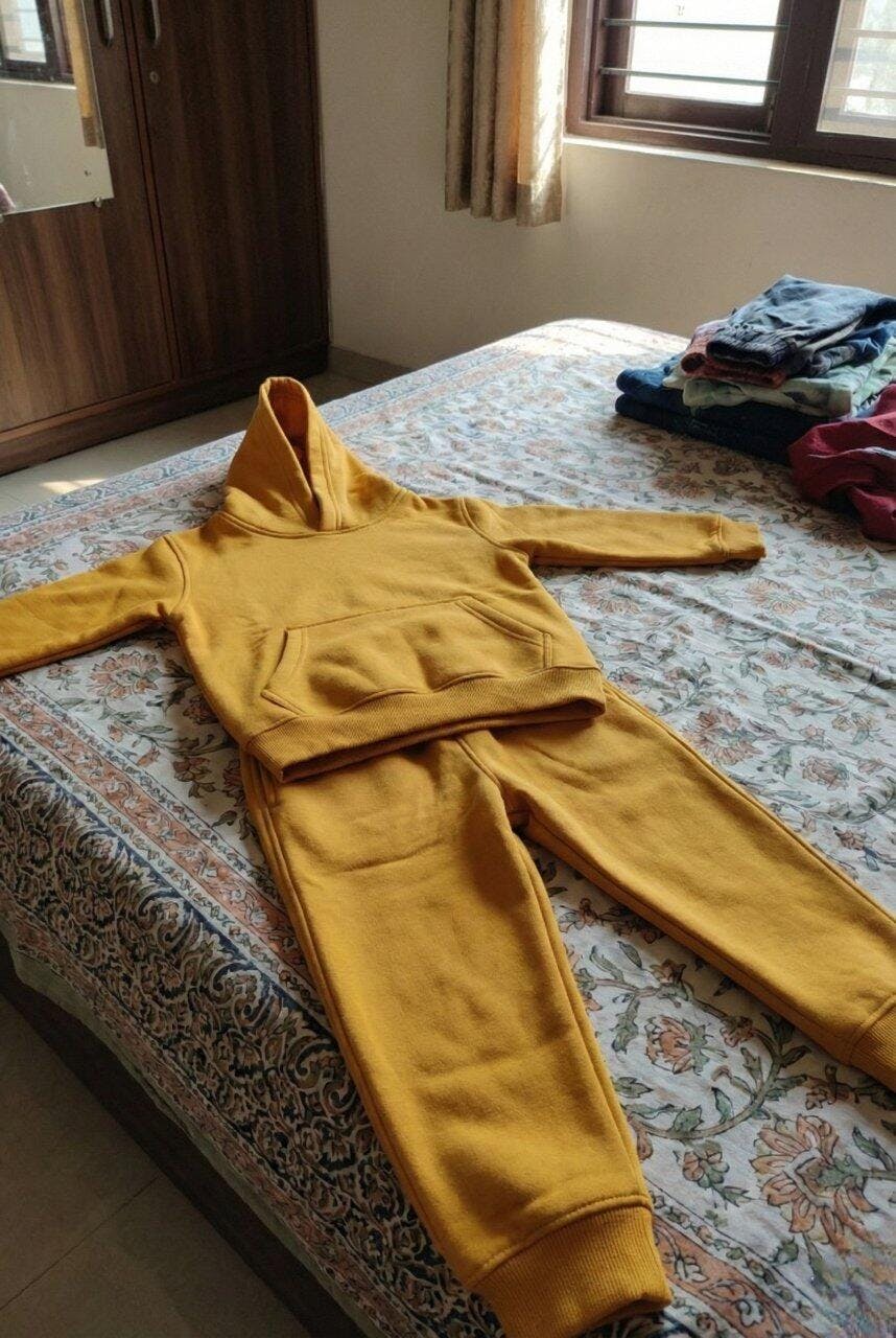 Boys Winter Cozy Fleece Warm Yellow Hoodie & Jogger Set