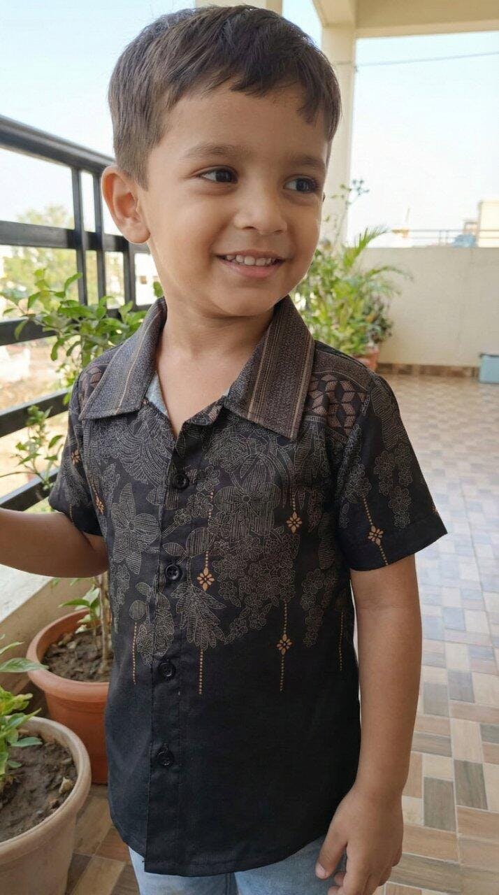The 'Shadow Petal' Designer Shirt – Modern Ethnic Fusion for Boys